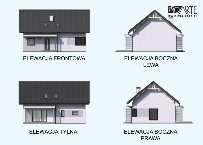 210.26 TRYPOLIS 7 szkielet drewniany https://szkieletowedomy.pl/projekt/domy-jednorodzinne/proarte-1025/ parter i poddasze użytkowe lub piętro wielospadowy