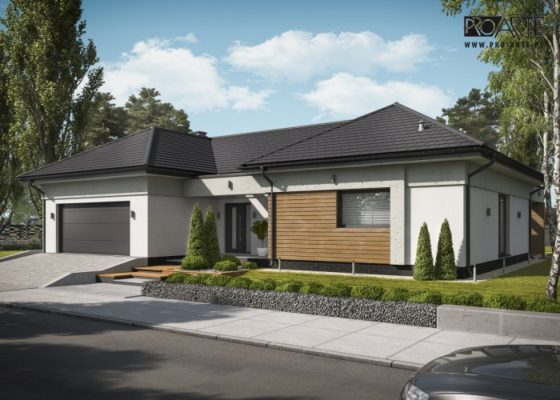 SANTANA 2 - projekt domu mieszkalnego, parterowego z podwójnym garażem.