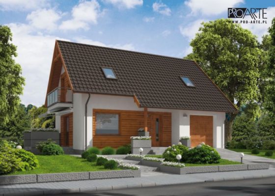 Nazwa projektu: KATANIA 2 szkielet drewniany, dom jednorodzinny z poddaszem użytkowym