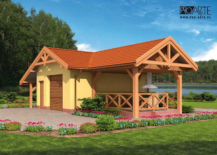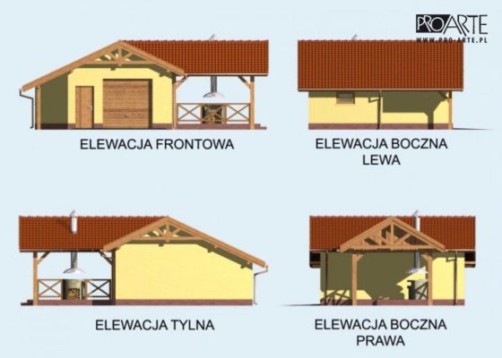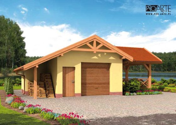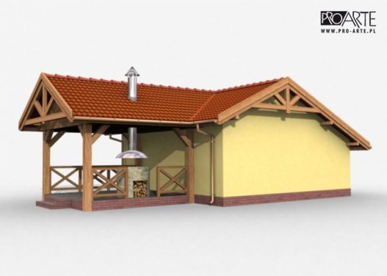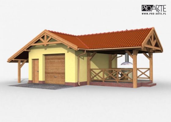 Budynek gospodarczy, wolnostojący. Projekt składa się z części architektonicznej, konstrukcyjnej i wewnętrznej instalacji elektrycznej. Projekt budynku składa się z 6 egzemplarzy, a w tym 3 tomów części architektoniczno-budowlanej oraz 3 technicznej. W projekcie załączone są podstawowe zestawienie stali, drewna i stolarki okienno-drzwiowej. Do projektu dołączamy bezpłatną zgodę na wprowadzenie zmian, oświadczenie projektantów o wykonaniu projektu zgodnie z obowiązującymi normami i przepisami oraz kserokopie uprawnień projektantów wraz z aktualnym wpisem do izby.  W przypadku zamówienia projektu w technologii lekkiej, drewnianej konstrukcji szkieletowej, powierzchnia użytkowa budynku jest o około 7% większa.