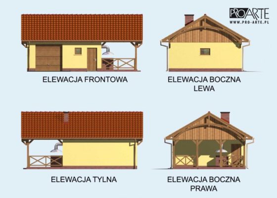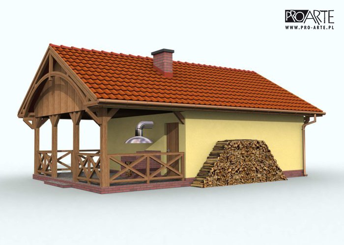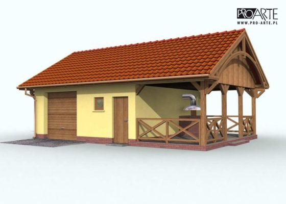 Budynek gospodarczy, wolnostojący. Projekt składa się z części architektonicznej, konstrukcyjnej i wewnętrznej instalacji elektrycznej. W projekcie załączone są podstawowe zestawienie stali, drewna i stolarki okienno-drzwiowej. Do projektu dołączamy bezpłatną zgodę na wprowadzenie zmian, oświadczenie projektantów o wykonaniu projektu zgodnie z obowiązującymi normami i przepisami oraz kserokopie uprawnień projektantów wraz z aktualnym wpisem do izby. W przypadku zamówienia projektu w technologii lekkiej, drewnianej konstrukcji szkieletowej, powierzchnia użytkowa budynku jest o około 7% większa.