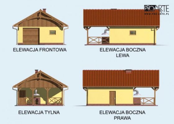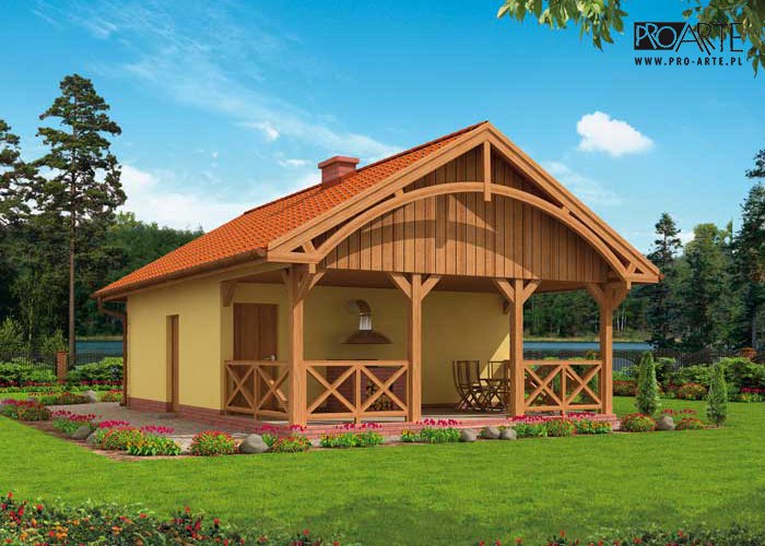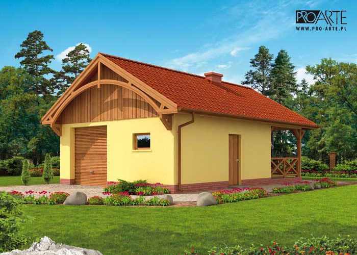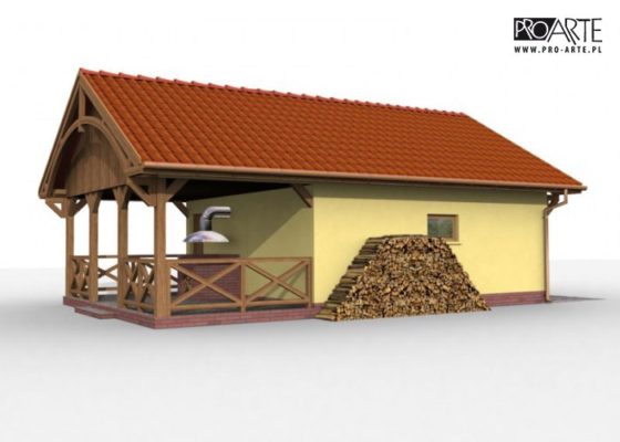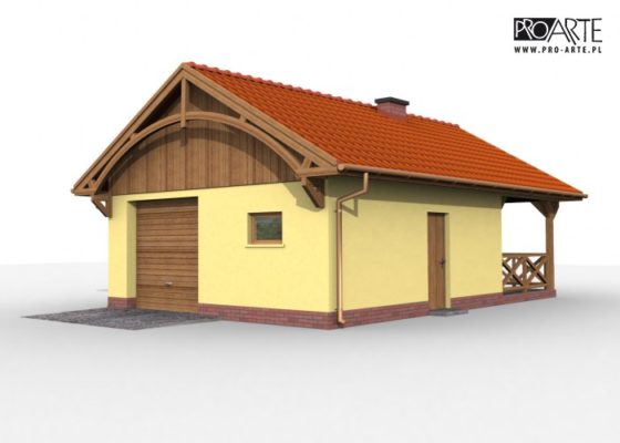 Budynek gospodarczy, wolnostojący. Projekt składa się z części architektonicznej, konstrukcyjnej i wewnętrznej instalacji elektrycznej. W projekcie załączone są podstawowe zestawienie stali, drewna i stolarki okienno-drzwiowej. Do projektu dołączamy bezpłatną zgodę na wprowadzenie zmian, oświadczenie projektantów o wykonaniu projektu zgodnie z obowiązującymi normami i przepisami oraz kserokopie uprawnień projektantów wraz z aktualnym wpisem do izby. W przypadku zamówienia projektu w technologii lekkiej, drewnianej konstrukcji szkieletowej, powierzchnia użytkowa budynku jest o około 7% większa.