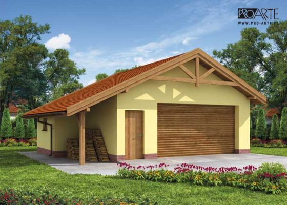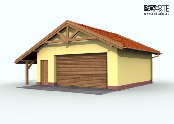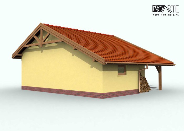 Budynek gospodarczy, wolnostojący. Projekt składa się z części architektonicznej, konstrukcyjnej i wewnętrznej instalacji elektrycznej. W projekcie załączone są podstawowe zestawienie stali, drewna i stolarki okienno-drzwiowej. Do projektu dołączamy bezpłatną zgodę na wprowadzenie zmian, oświadczenie projektantów o wykonaniu projektu zgodnie z obowiązującymi normami i przepisami oraz kserokopie uprawnień projektantów wraz z aktualnym wpisem do izby. W przypadku zamówienia projektu w technologii lekkiej, drewnianej konstrukcji szkieletowej, powierzchnia użytkowa budynku jest o około 7% większa.