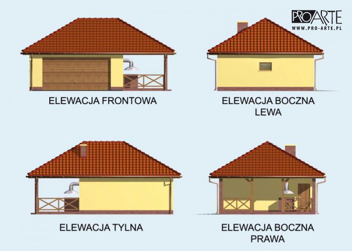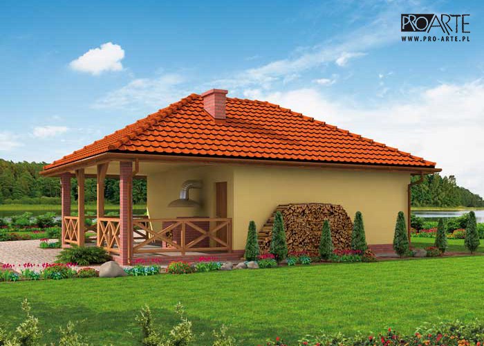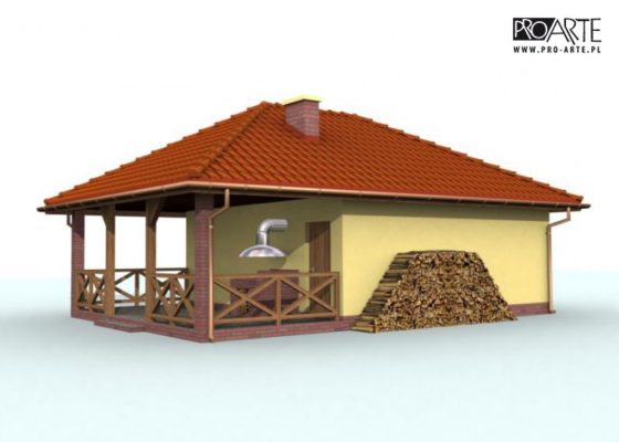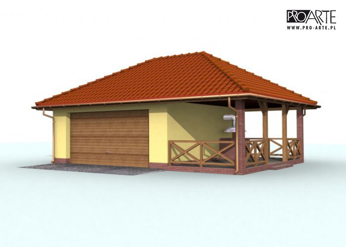 Budynek gospodarczy, wolnostojący.Projekt budynku składa się z 6 egzemplarzy, a w tym części architektoniczno-budowlanejj oraz 3 technicznej. W projekcie załączone są podstawowe zestawienie stali, drewna i stolarki okienno-drzwiowej. Do projektu dołączamy bezpłatną zgodę na wprowadzenie zmian, oświadczenie projektantów o wykonaniu projektu zgodnie z obowiązującymi normami i przepisami oraz kserokopie uprawnień projektantów wraz z aktualnym wpisem do izby. W przypadku zamówienia projektu w technologii lekkiej, drewnianej konstrukcji szkieletowej, powierzchnia użytkowa budynku jest o około 7% większa.