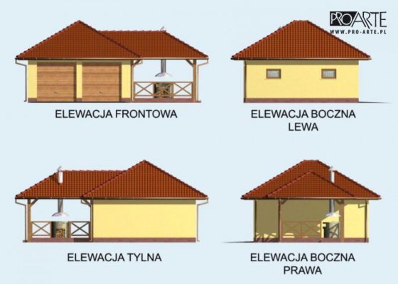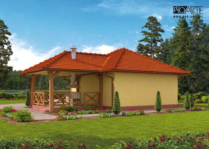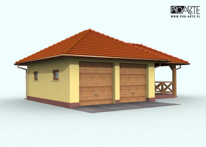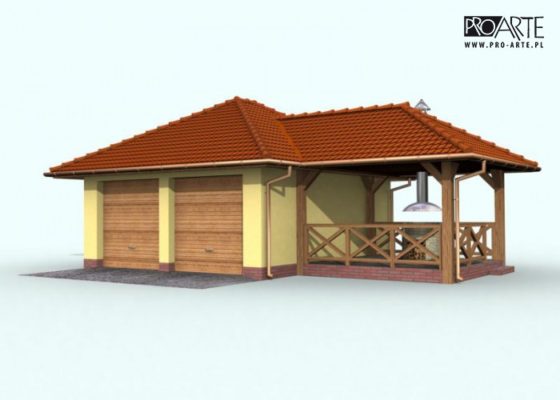 Budynek gospodarczy, wolnostojący. Projekt składa się z części architektonicznej, konstrukcyjnej i wewnętrznej instalacji elektrycznej. W projekcie załączone są podstawowe zestawienie stali, drewna i stolarki okienno-drzwiowej. Do projektu dołączamy bezpłatną zgodę na wprowadzenie zmian, oświadczenie projektantów o wykonaniu projektu zgodnie z obowiązującymi normami i przepisami oraz kserokopie uprawnień projektantów wraz z aktualnym wpisem do izby. W przypadku zamówienia projektu w technologii lekkiej, drewnianej konstrukcji szkieletowej, powierzchnia użytkowa budynku jest o około 7% większa.