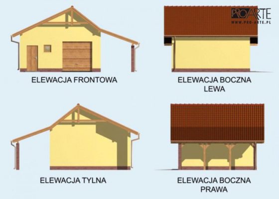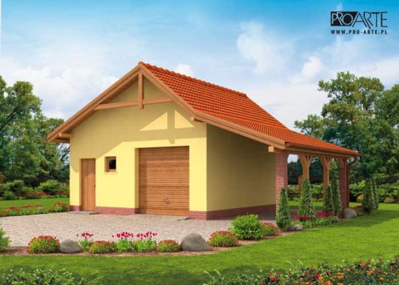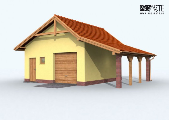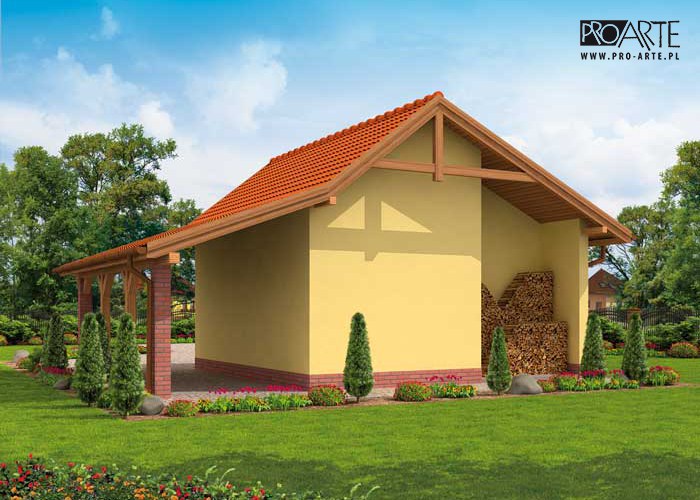 Budynek gospodarczy, wolnostojący. Projekt składa się z części architektonicznej, konstrukcyjnej i wewnętrznej instalacji elektrycznej. W projekcie załączone są podstawowe zestawienie stali, drewna i stolarki okienno-drzwiowej. Do projektu dołączamy bezpłatną zgodę na wprowadzenie zmian, oświadczenie projektantów o wykonaniu projektu zgodnie z obowiązującymi normami i przepisami oraz kserokopie uprawnień projektantów wraz z aktualnym wpisem do izby. W przypadku zamówienia projektu w technologii lekkiej, drewnianej konstrukcji szkieletowej, powierzchnia użytkowa budynku jest o około 7% większa.