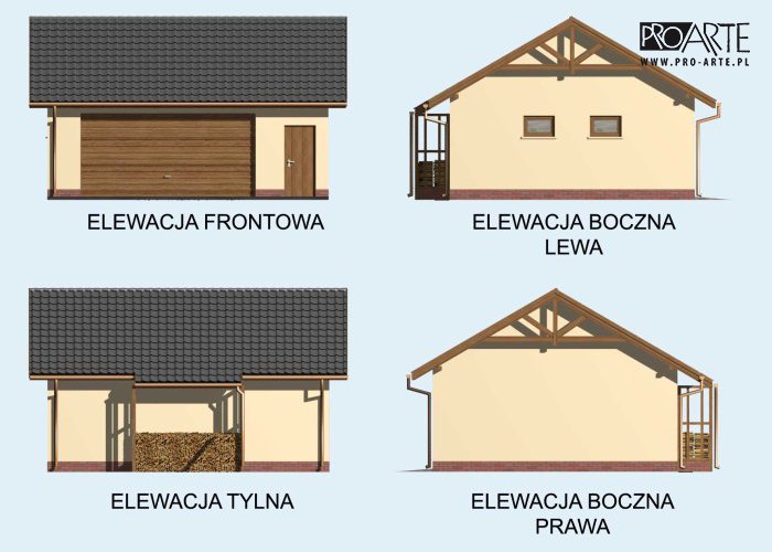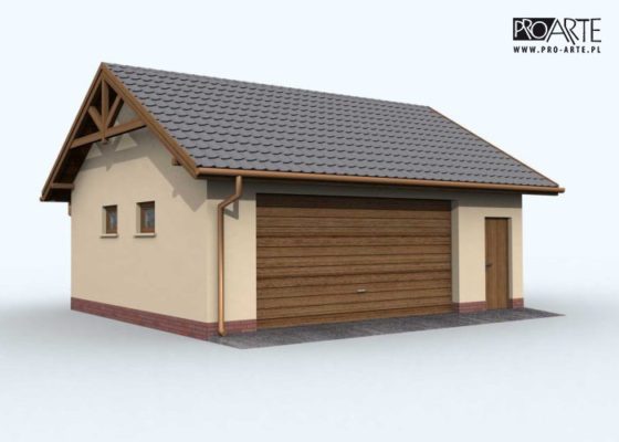 Budynek gospodarczy, wolnostojący. Projekt składa się z części architektonicznej, konstrukcyjnej i wewnętrznej instalacji elektrycznej. W projekcie załączone są podstawowe zestawienie stali, drewna i stolarki okienno-drzwiowej. Do projektu dołączamy bezpłatną zgodę na wprowadzenie zmian, oświadczenie projektantów o wykonaniu projektu zgodnie z obowiązującymi normami i przepisami oraz kserokopie uprawnień projektantów wraz z aktualnym wpisem do izby. W przypadku zamówienia projektu w technologii lekkiej, drewnianej konstrukcji szkieletowej, powierzchnia użytkowa budynku jest o około 7% większa.