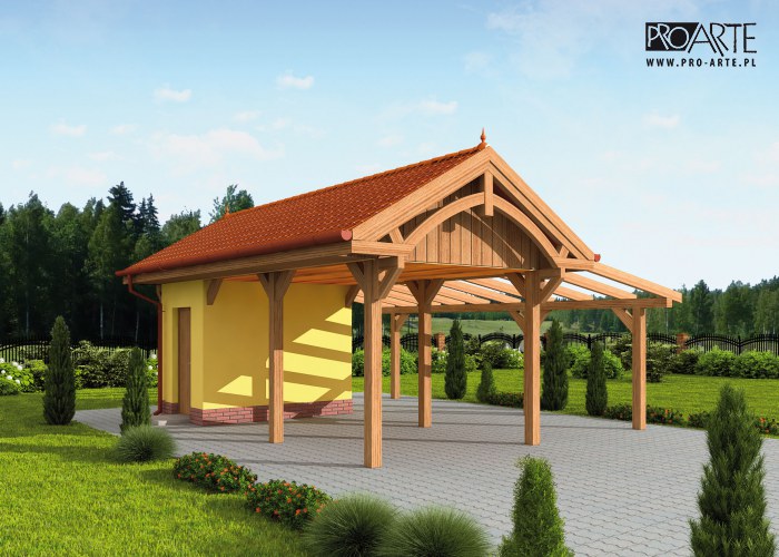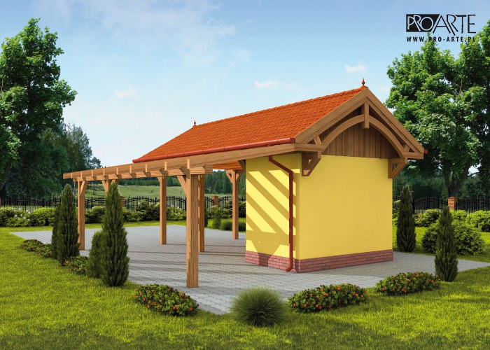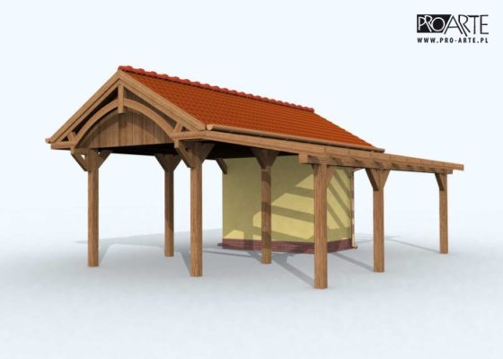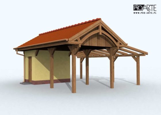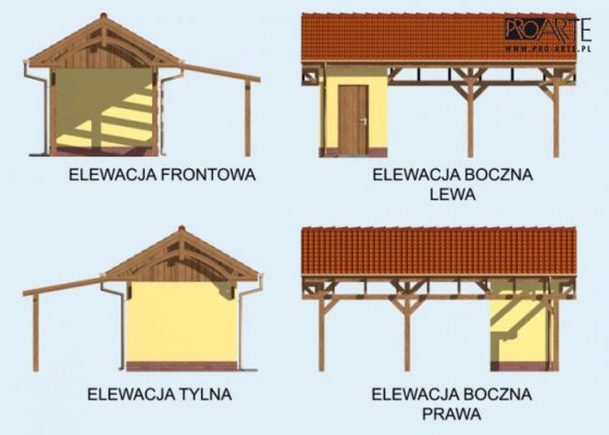 Budynek gospodarczy, wolnostojący. Projekt składa się z części architektonicznej, konstrukcyjnej i wewnętrznej instalacji elektrycznej. W projekcie załączone są podstawowe zestawienie stali, drewna i stolarki okienno-drzwiowej. Do projektu dołączamy bezpłatną zgodę na wprowadzenie zmian, oświadczenie projektantów o wykonaniu projektu zgodnie z obowiązującymi normami i przepisami oraz kserokopie uprawnień projektantów wraz z aktualnym wpisem do izby. W przypadku zamówienia projektu w technologii lekkiej, drewnianej konstrukcji szkieletowej, powierzchnia użytkowa budynku jest o około 7% większa.