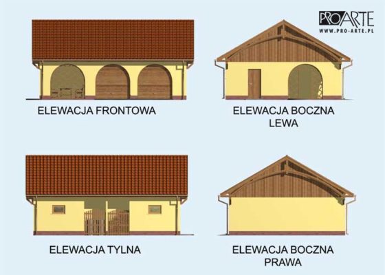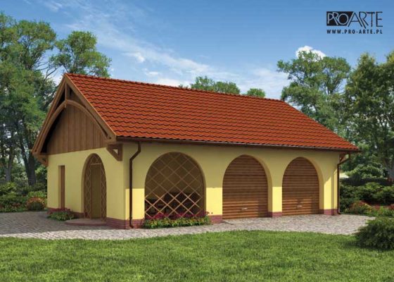 Budynek gospodarczy, wolnostojący. Projekt składa się z części architektonicznej, konstrukcyjnej i wewnętrznej instalacji elektrycznej. W projekcie załączone są podstawowe zestawienie stali, drewna i stolarki okienno-drzwiowej. Do projektu dołączamy bezpłatną zgodę na wprowadzenie zmian, oświadczenie projektantów o wykonaniu projektu zgodnie z obowiązującymi normami i przepisami oraz kserokopie uprawnień projektantów wraz z aktualnym wpisem do izby. W przypadku zamówienia projektu w technologii lekkiej, drewnianej konstrukcji szkieletowej, powierzchnia użytkowa budynku jest o około 7% większa.
