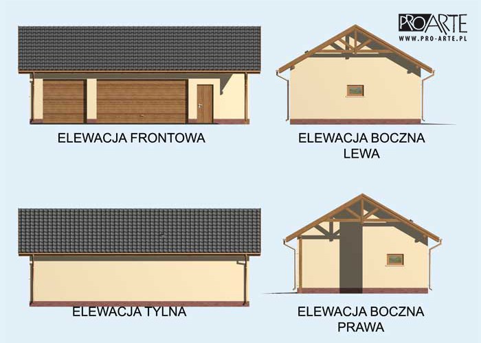 73.76 G156 budynek gospodarczy https://szkieletowedomy.pl/projekt/inne-obiekty/proarte-1219/ parter i poddasze użytkowe lub piętro wielospadowy