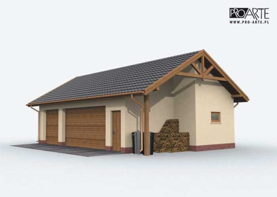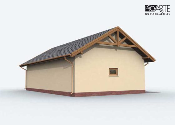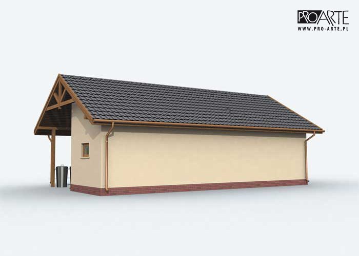 Budynek gospodarczy, wolnostojący. Projekt składa się z części architektonicznej, konstrukcyjnej i wewnętrznej instalacji elektrycznej. W projekcie załączone są podstawowe zestawienie stali, drewna i stolarki okienno-drzwiowej. Do projektu dołączamy bezpłatną zgodę na wprowadzenie zmian, oświadczenie projektantów o wykonaniu projektu zgodnie z obowiązującymi normami i przepisami oraz kserokopie uprawnień projektantów wraz z aktualnym wpisem do izby. W przypadku zamówienia projektu w technologii lekkiej, drewnianej konstrukcji szkieletowej, powierzchnia użytkowa budynku jest o około 7% większa.