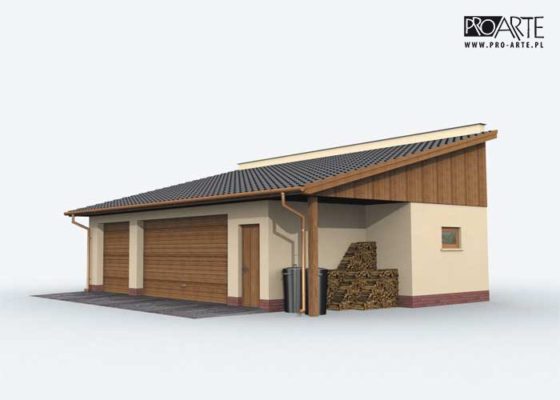 Budynek gospodarczy, wolnostojący. Projekt składa się z części architektonicznej, konstrukcyjnej i wewnętrznej instalacji elektrycznej. W projekcie załączone są podstawowe zestawienie stali, drewna i stolarki okienno-drzwiowej. Do projektu dołączamy bezpłatną zgodę na wprowadzenie zmian, oświadczenie projektantów o wykonaniu projektu zgodnie z obowiązującymi normami i przepisami oraz kserokopie uprawnień projektantów wraz z aktualnym wpisem do izby. W przypadku zamówienia projektu w technologii lekkiej, drewnianej konstrukcji szkieletowej, powierzchnia użytkowa budynku jest o około 7% większa.