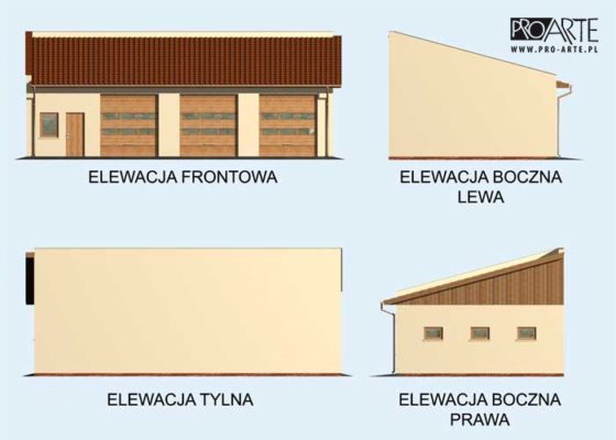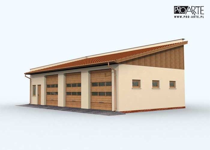 Budynek gospodarczy, wolnostojący. Projekt składa się z części architektonicznej, konstrukcyjnej i wewnętrznej instalacji elektrycznej. W projekcie załączone są podstawowe zestawienie stali, drewna i stolarki okienno-drzwiowej. Do projektu dołączamy bezpłatną zgodę na wprowadzenie zmian, oświadczenie projektantów o wykonaniu projektu zgodnie z obowiązującymi normami i przepisami oraz kserokopie uprawnień projektantów wraz z aktualnym wpisem do izby. W przypadku zamówienia projektu w technologii lekkiej, drewnianej konstrukcji szkieletowej, powierzchnia użytkowa budynku jest o około 7% większa.