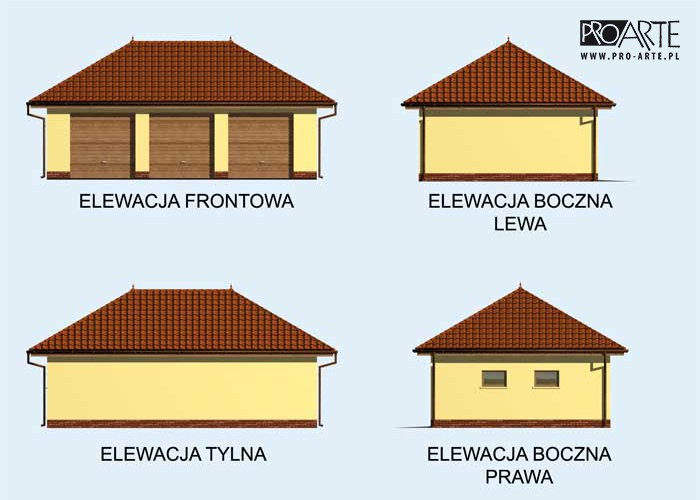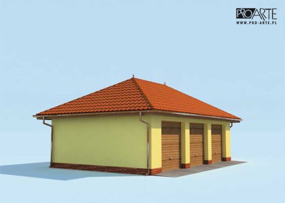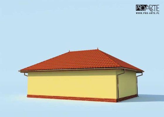 Budynek gospodarczy, wolnostojący. Projekt składa się z części architektonicznej, konstrukcyjnej i wewnętrznej instalacji elektrycznej. W projekcie załączone są podstawowe zestawienie stali, drewna i stolarki okienno-drzwiowej. Do projektu dołączamy bezpłatną zgodę na wprowadzenie zmian, oświadczenie projektantów o wykonaniu projektu zgodnie z obowiązującymi normami i przepisami oraz kserokopie uprawnień projektantów wraz z aktualnym wpisem do izby. W przypadku zamówienia projektu w technologii lekkiej, drewnianej konstrukcji szkieletowej, powierzchnia użytkowa budynku jest o około 7% większa.