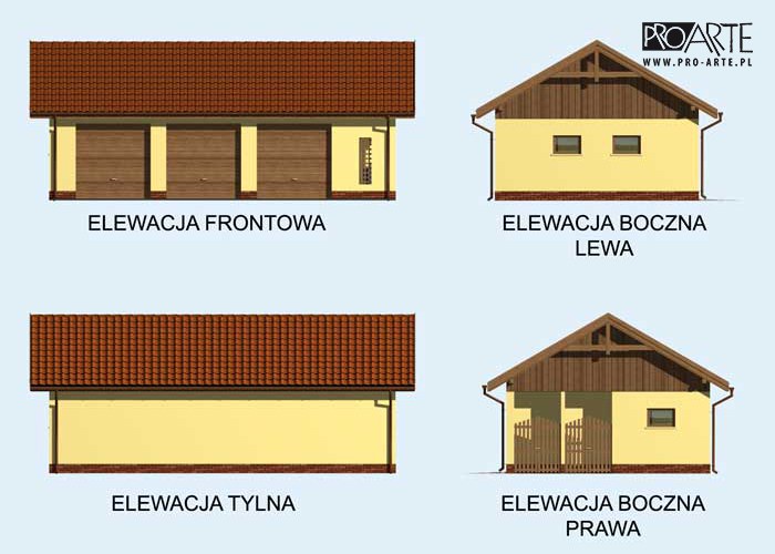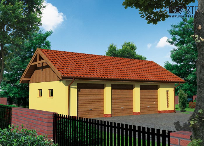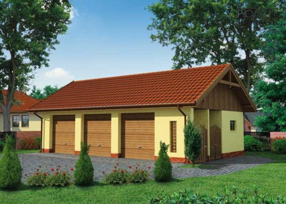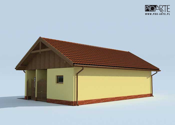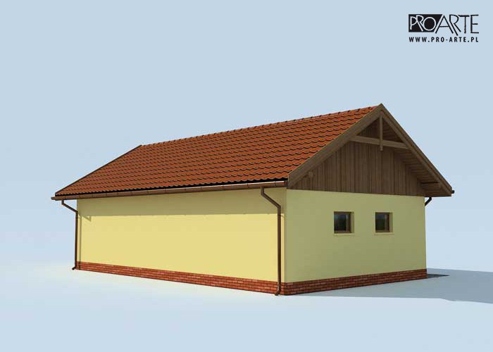 Budynek gospodarczy, wolnostojący. Projekt składa się z części architektonicznej, konstrukcyjnej i wewnętrznej instalacji elektrycznej. W projekcie załączone są podstawowe zestawienie stali, drewna i stolarki okienno-drzwiowej. Do projektu dołączamy bezpłatną zgodę na wprowadzenie zmian, oświadczenie projektantów o wykonaniu projektu zgodnie z obowiązującymi normami i przepisami oraz kserokopie uprawnień projektantów wraz z aktualnym wpisem do izby. W przypadku zamówienia projektu w technologii lekkiej, drewnianej konstrukcji szkieletowej, powierzchnia użytkowa budynku jest o około 7% większa.