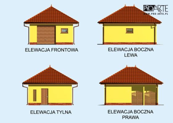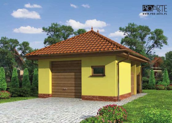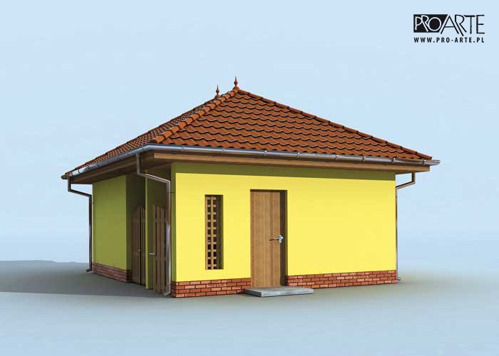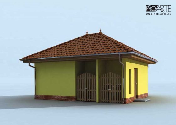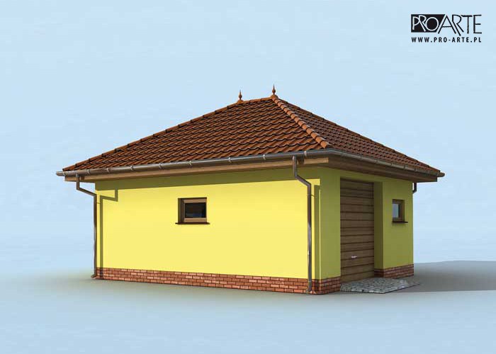 Budynek gospodarczy, wolnostojący. Projekt budynku składa się z 6 egzemplarzy, a w tym 3 tomów części architektoniczno-budowlanej oraz 3 technicznej. W projekcie załączone są podstawowe zestawienie stali, drewna i stolarki okienno-drzwiowej. Do projektu dołączamy bezpłatną zgodę na wprowadzenie zmian, oświadczenie projektantów o wykonaniu projektu zgodnie z obowiązującymi normami i przepisami oraz kserokopie uprawnień projektantów wraz z aktualnym wpisem do izby. W przypadku zamówienia projektu w technologii lekkiej, drewnianej konstrukcji szkieletowej, powierzchnia użytkowa budynku jest o około 7% większa.