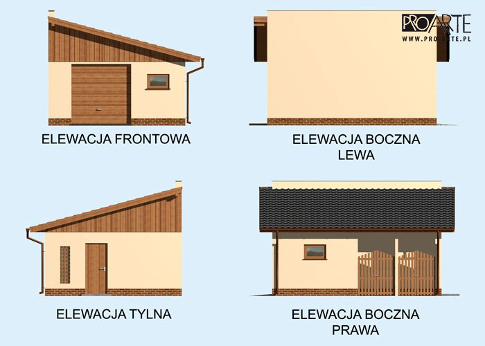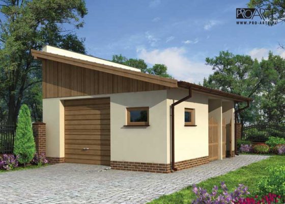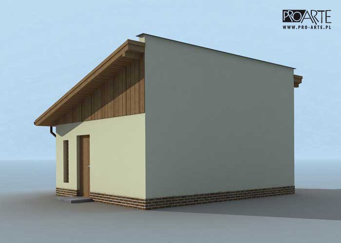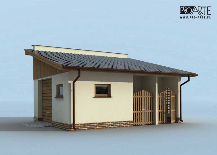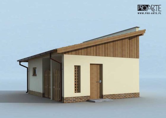 Budynek gospodarczy, wolnostojący. Projekt składa się z części architektonicznej, konstrukcyjnej i wewnętrznej instalacji elektrycznej. W projekcie załączone są podstawowe zestawienie stali, drewna i stolarki okienno-drzwiowej. Do projektu dołączamy bezpłatną zgodę na wprowadzenie zmian, oświadczenie projektantów o wykonaniu projektu zgodnie z obowiązującymi normami i przepisami oraz kserokopie uprawnień projektantów wraz z aktualnym wpisem do izby. W przypadku zamówienia projektu w technologii lekkiej, drewnianej konstrukcji szkieletowej, powierzchnia użytkowa budynku jest o około 7% większa.