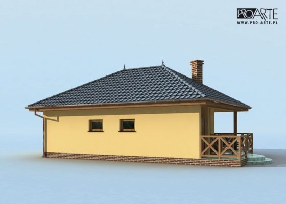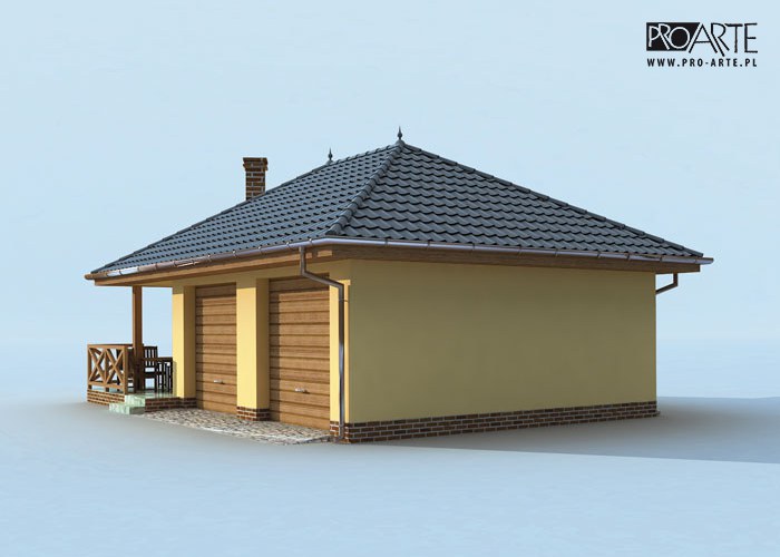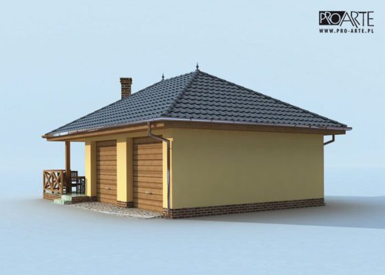 Budynek gospodarczy, wolnostojący. Projekt składa się z części architektonicznej, konstrukcyjnej i wewnętrznej instalacji elektrycznej. Projekt budynku składa się z 6 egzemplarzy, a w tym części architektoniczno-budowlanejj oraz 3 technicznej. W projekcie załączone są podstawowe zestawienie stali, drewna i stolarki okienno-drzwiowej. Do projektu dołączamy bezpłatną zgodę na wprowadzenie zmian, oświadczenie projektantów o wykonaniu projektu zgodnie z obowiązującymi normami i przepisami oraz kserokopie uprawnień projektantów wraz z aktualnym wpisem do izby. W przypadku zamówienia projektu w technologii lekkiej, drewnianej konstrukcji szkieletowej, powierzchnia użytkowa budynku jest o około 7% większa.