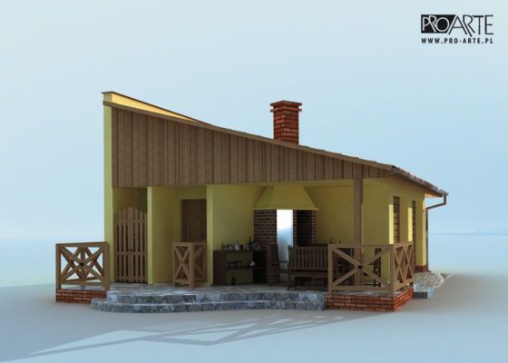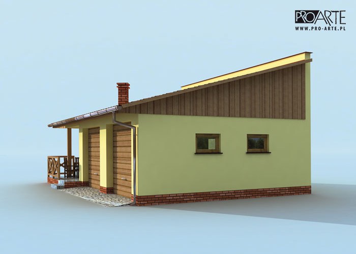 Budynek gospodarczy, wolnostojący. Projekt składa się z części architektonicznej, konstrukcyjnej i wewnętrznej instalacji elektrycznej. W projekcie załączone są podstawowe zestawienie stali, drewna i stolarki okienno-drzwiowej. Do projektu dołączamy bezpłatną zgodę na wprowadzenie zmian, oświadczenie projektantów o wykonaniu projektu zgodnie z obowiązującymi normami i przepisami oraz kserokopie uprawnień projektantów wraz z aktualnym wpisem do izby. W przypadku zamówienia projektu w technologii lekkiej, drewnianej konstrukcji szkieletowej, powierzchnia użytkowa budynku jest o około 7% większa.