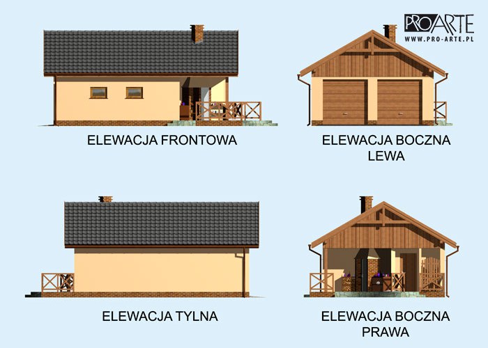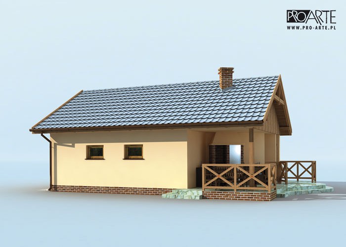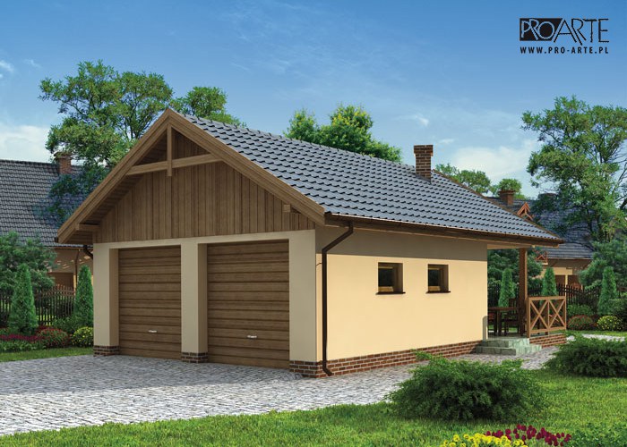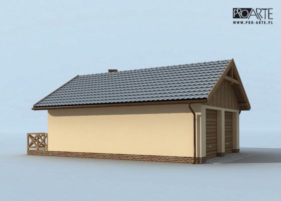 Budynek gospodarczy, wolnostojący. Projekt składa się z części architektonicznej, konstrukcyjnej i wewnętrznej instalacji elektrycznej. W projekcie załączone są podstawowe zestawienie stali, drewna i stolarki okienno-drzwiowej. Do projektu dołączamy bezpłatną zgodę na wprowadzenie zmian, oświadczenie projektantów o wykonaniu projektu zgodnie z obowiązującymi normami i przepisami oraz kserokopie uprawnień projektantów wraz z aktualnym wpisem do izby. W przypadku zamówienia projektu w technologii lekkiej, drewnianej konstrukcji szkieletowej, powierzchnia użytkowa budynku jest o około 7% większa.