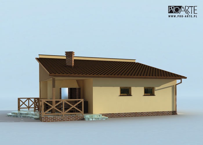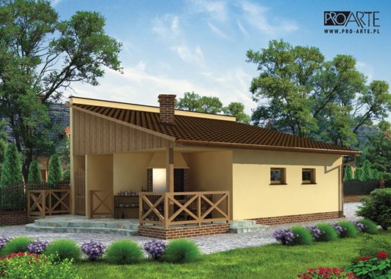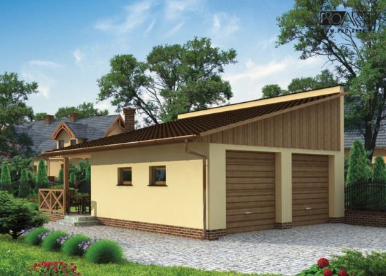 Budynek gospodarczy, wolnostojący. Projekt składa się z części architektonicznej, konstrukcyjnej i wewnętrznej instalacji elektrycznej. W projekcie załączone są podstawowe zestawienie stali, drewna i stolarki okienno-drzwiowej. Do projektu dołączamy bezpłatną zgodę na wprowadzenie zmian, oświadczenie projektantów o wykonaniu projektu zgodnie z obowiązującymi normami i przepisami oraz kserokopie uprawnień projektantów wraz z aktualnym wpisem do izby. W przypadku zamówienia projektu w technologii lekkiej, drewnianej konstrukcji szkieletowej, powierzchnia użytkowa budynku jest o około 7% większa.