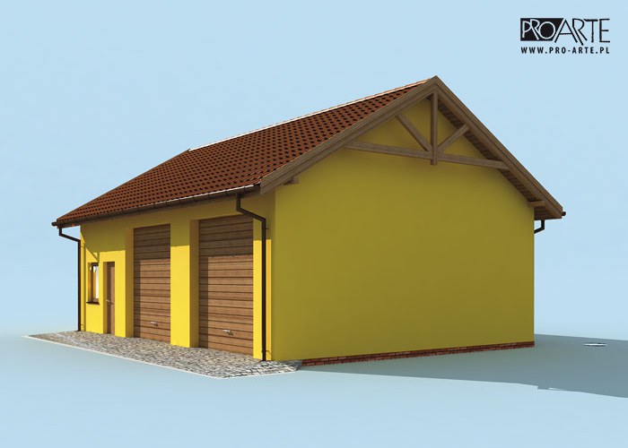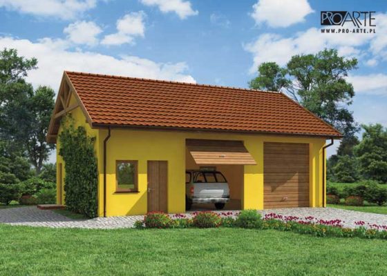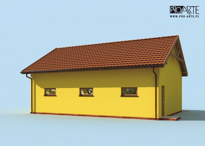 Budynek gospodarczy, wolnostojący. Projekt składa się z części architektonicznej, konstrukcyjnej i wewnętrznej instalacji elektrycznej. W projekcie załączone są podstawowe zestawienie stali, drewna i stolarki okienno-drzwiowej. Do projektu dołączamy bezpłatną zgodę na wprowadzenie zmian, oświadczenie projektantów o wykonaniu projektu zgodnie z obowiązującymi normami i przepisami oraz kserokopie uprawnień projektantów wraz z aktualnym wpisem do izby. W przypadku zamówienia projektu w technologii lekkiej, drewnianej konstrukcji szkieletowej, powierzchnia użytkowa budynku jest o około 7% większa.