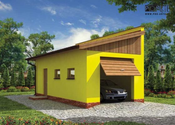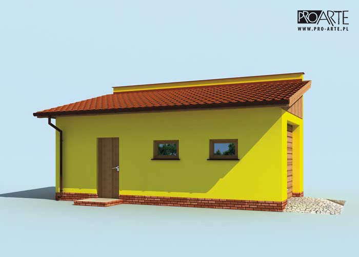 Budynek gospodarczy, wolnostojący. Projekt składa się z części architektonicznej, konstrukcyjnej i wewnętrznej instalacji elektrycznej. W projekcie załączone są podstawowe zestawienie stali, drewna i stolarki okienno-drzwiowej. Do projektu dołączamy bezpłatną zgodę na wprowadzenie zmian, oświadczenie projektantów o wykonaniu projektu zgodnie z obowiązującymi normami i przepisami oraz kserokopie uprawnień projektantów wraz z aktualnym wpisem do izby. W przypadku zamówienia projektu w technologii lekkiej, drewnianej konstrukcji szkieletowej, powierzchnia użytkowa budynku jest o około 7% większa.
