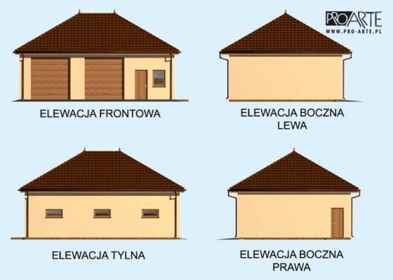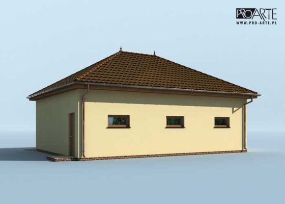 Budynek gospodarczy, wolnostojący. Projekt składa się z części architektonicznej, konstrukcyjnej i wewnętrznej instalacji elektrycznej. W projekcie załączone są podstawowe zestawienie stali, drewna i stolarki okienno-drzwiowej. Do projektu dołączamy bezpłatną zgodę na wprowadzenie zmian, oświadczenie projektantów o wykonaniu projektu zgodnie z obowiązującymi normami i przepisami oraz kserokopie uprawnień projektantów wraz z aktualnym wpisem do izby. W przypadku zamówienia projektu w technologii lekkiej, drewnianej konstrukcji szkieletowej, powierzchnia użytkowa budynku jest o około 7% większa.