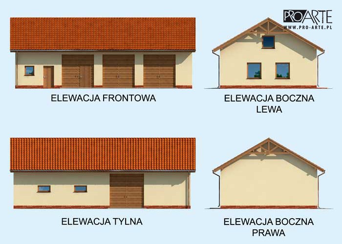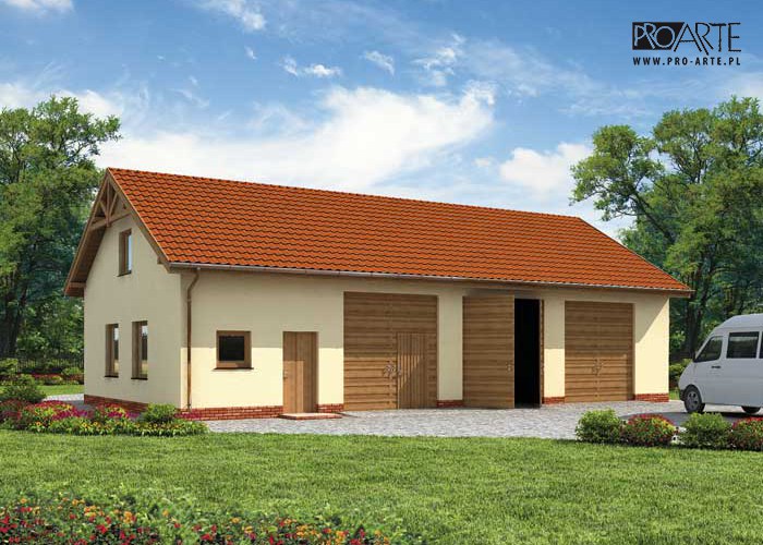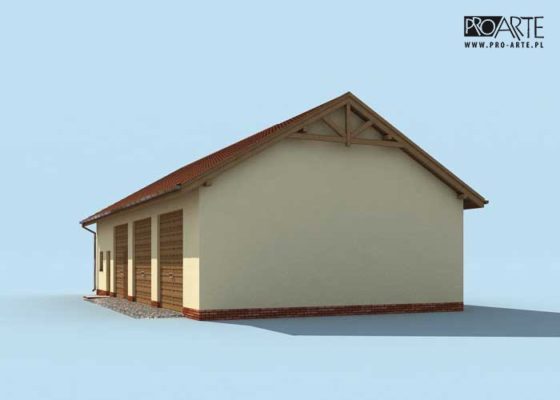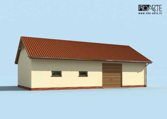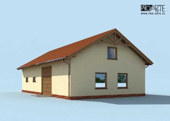Budynek gospodarczy, wolnostojący. Projekt składa się z części architektonicznej, konstrukcyjnej i wewnętrznej instalacji elektrycznej. W projekcie załączone są podstawowe zestawienie stali, drewna i stolarki okienno-drzwiowej. Do projektu dołączamy bezpłatną zgodę na wprowadzenie zmian, oświadczenie projektantów o wykonaniu projektu zgodnie z obowiązującymi normami i przepisami oraz kserokopie uprawnień projektantów wraz z aktualnym wpisem do izby. W przypadku zamówienia projektu w technologii lekkiej, drewnianej konstrukcji szkieletowej, powierzchnia użytkowa budynku jest o około 7% większa.