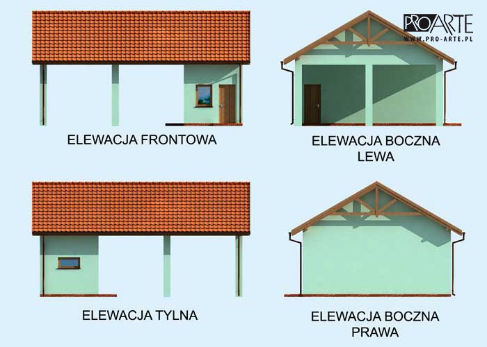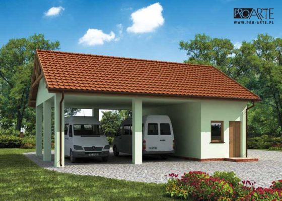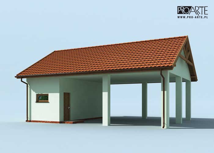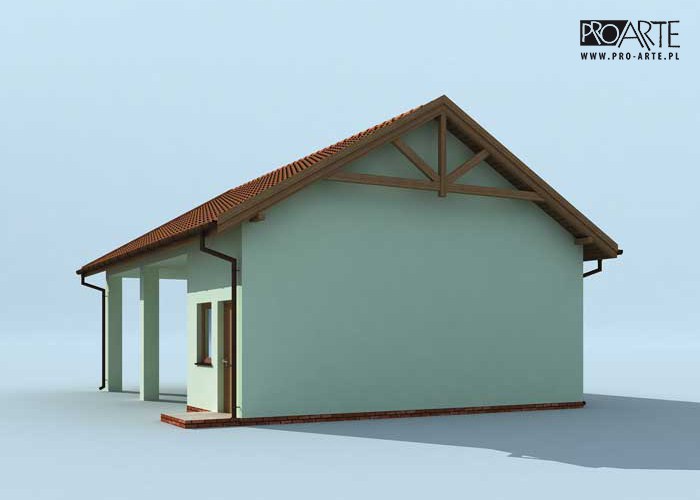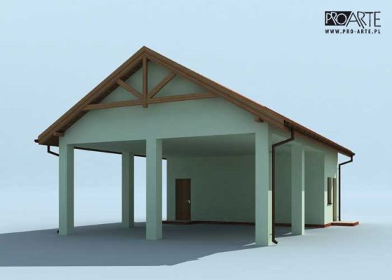 Budynek gospodarczy, wolnostojący. Projekt składa się z części architektonicznej, konstrukcyjnej i wewnętrznej instalacji elektrycznej. W projekcie załączone są podstawowe zestawienie stali, drewna i stolarki okienno-drzwiowej. Do projektu dołączamy bezpłatną zgodę na wprowadzenie zmian, oświadczenie projektantów o wykonaniu projektu zgodnie z obowiązującymi normami i przepisami oraz kserokopie uprawnień projektantów wraz z aktualnym wpisem do izby. W przypadku zamówienia projektu w technologii lekkiej, drewnianej konstrukcji szkieletowej, powierzchnia użytkowa budynku jest o około 7% większa.