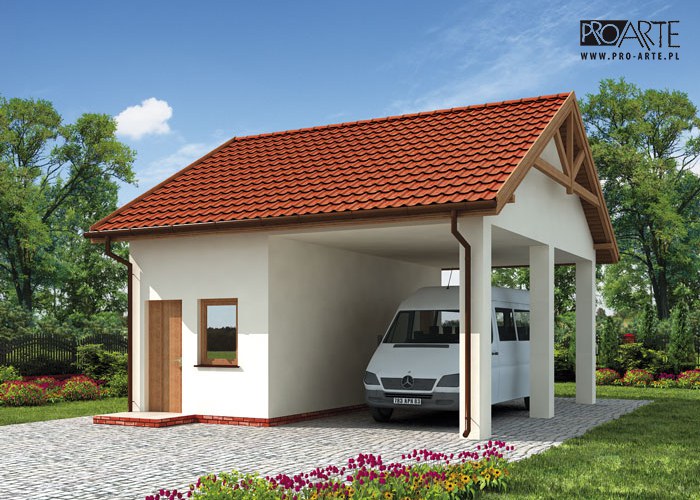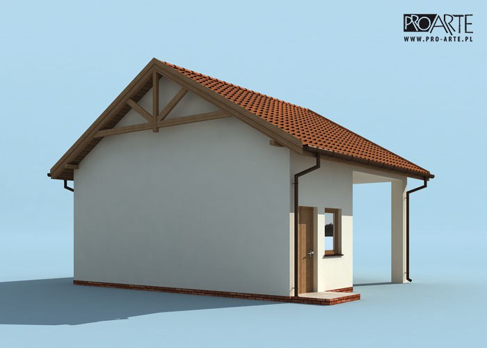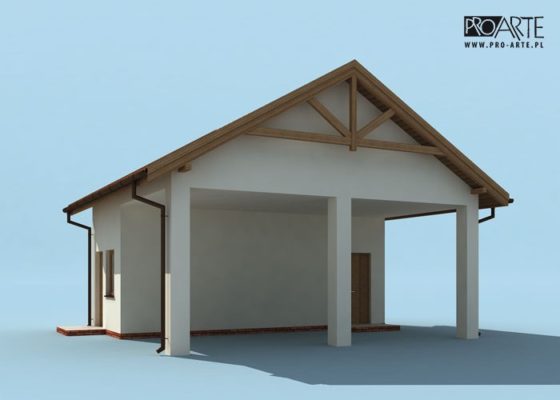 Budynek gospodarczy, wolnostojący. Projekt budynku składa się z 6 egzemplarzy, a w tym 3 tomów części architektoniczno-budowlanej oraz 3 technicznej. W projekcie załączone są podstawowe zestawienie stali, drewna i stolarki okienno-drzwiowej. Do projektu dołączamy bezpłatną zgodę na wprowadzenie zmian, oświadczenie projektantów o wykonaniu projektu zgodnie z obowiązującymi normami i przepisami oraz kserokopie uprawnień projektantów wraz z aktualnym wpisem do izby.  W przypadku zamówienia projektu w technologii lekkiej, drewnianej konstrukcji szkieletowej, powierzchnia użytkowa budynku jest o około 7% większa.