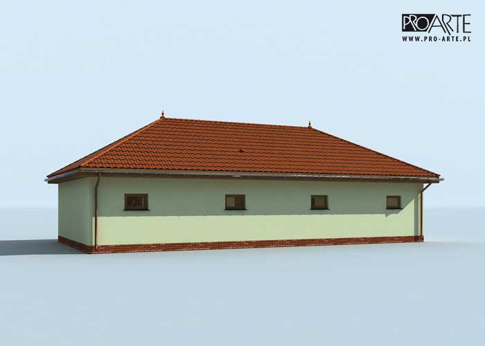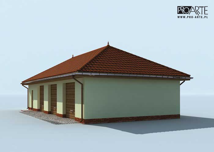 Budynek gospodarczy, wolnostojący. Projekt składa się z części architektonicznej, konstrukcyjnej i wewnętrznej instalacji elektrycznej. W projekcie załączone są podstawowe zestawienie stali, drewna i stolarki okienno-drzwiowej. Do projektu dołączamy bezpłatną zgodę na wprowadzenie zmian, oświadczenie projektantów o wykonaniu projektu zgodnie z obowiązującymi normami i przepisami oraz kserokopie uprawnień projektantów wraz z aktualnym wpisem do izby. W przypadku zamówienia projektu w technologii lekkiej, drewnianej konstrukcji szkieletowej, powierzchnia użytkowa budynku jest o około 7% większa.