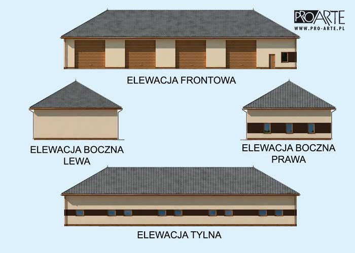 402 G223 budynek gospodarczy https://szkieletowedomy.pl/projekt/inne-obiekty/proarte-1284/ parter i poddasze użytkowe lub piętro wielospadowy