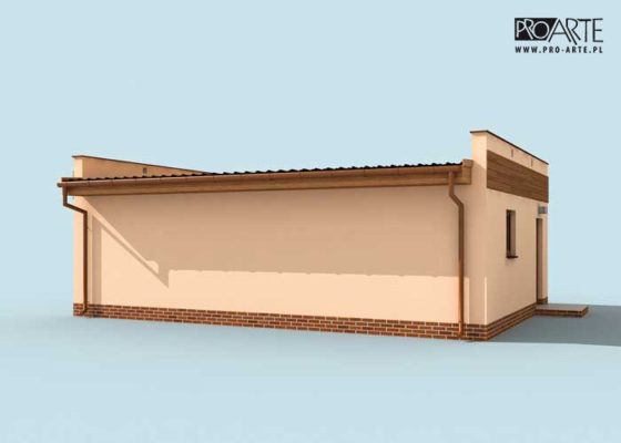 Budynek gospodarczy, wolnostojący. Projekt składa się z części architektonicznej, konstrukcyjnej i wewnętrznej instalacji elektrycznej. W projekcie załączone są podstawowe zestawienie stali, drewna i stolarki okienno-drzwiowej. Do projektu dołączamy bezpłatną zgodę na wprowadzenie zmian, oświadczenie projektantów o wykonaniu projektu zgodnie z obowiązującymi normami i przepisami oraz kserokopie uprawnień projektantów wraz z aktualnym wpisem do izby. W przypadku zamówienia projektu w technologii lekkiej, drewnianej konstrukcji szkieletowej, powierzchnia użytkowa budynku jest o około 7% większa.