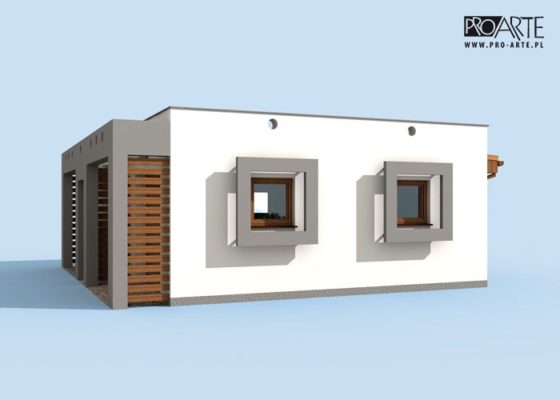 Budynek gospodarczy, wolnostojący. Projekt składa się z części architektonicznej, konstrukcyjnej i wewnętrznej instalacji elektrycznej. W projekcie załączone są podstawowe zestawienie stali, drewna i stolarki okienno-drzwiowej. Do projektu dołączamy bezpłatną zgodę na wprowadzenie zmian, oświadczenie projektantów o wykonaniu projektu zgodnie z obowiązującymi normami i przepisami oraz kserokopie uprawnień projektantów wraz z aktualnym wpisem do izby. W przypadku zamówienia projektu w technologii lekkiej, drewnianej konstrukcji szkieletowej, powierzchnia użytkowa budynku jest o około 7% większa.