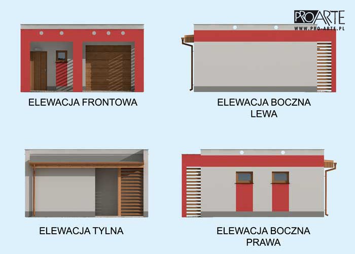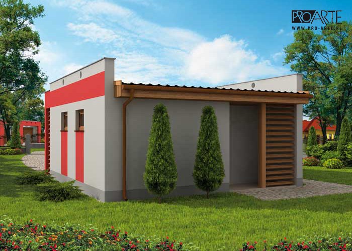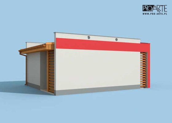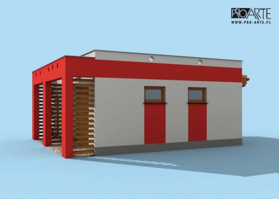 Budynek gospodarczy, wolnostojący. Projekt budynku składa się z 6 egzemplarzy, a w tym części architektoniczno-budowlanejj oraz 3 technicznej. W projekcie załączone są podstawowe zestawienie stali, drewna i stolarki okienno-drzwiowej. Do projektu dołączamy bezpłatną zgodę na wprowadzenie zmian, oświadczenie projektantów o wykonaniu projektu zgodnie z obowiązującymi normami i przepisami oraz kserokopie uprawnień projektantów wraz z aktualnym wpisem do izby. W przypadku zamówienia projektu w technologii lekkiej, drewnianej konstrukcji szkieletowej, powierzchnia użytkowa budynku jest o około 7% większa.