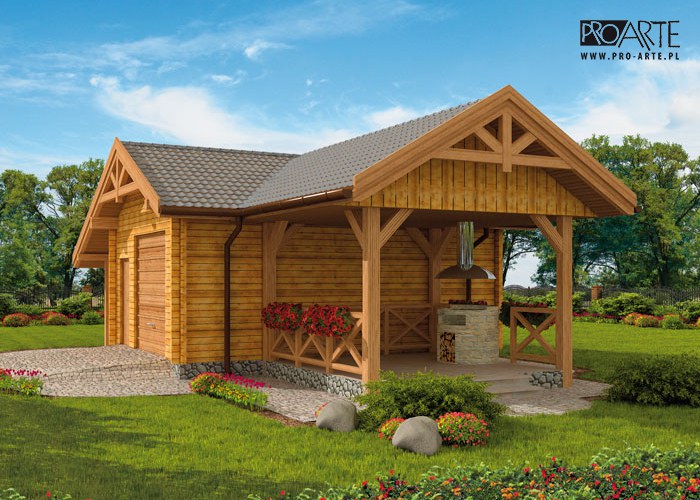 Budynek gospodarczy, wolnostojący. Projekt składa się z części architektonicznej, konstrukcyjnej i wewnętrznej instalacji elektrycznej. W projekcie załączone są podstawowe zestawienie stali, drewna i stolarki okienno-drzwiowej. Do projektu dołączamy bezpłatną zgodę na wprowadzenie zmian, oświadczenie projektantów o wykonaniu projektu zgodnie z obowiązującymi normami i przepisami oraz kserokopie uprawnień projektantów wraz z aktualnym wpisem do izby. W przypadku zamówienia projektu w technologii lekkiej, drewnianej konstrukcji szkieletowej, powierzchnia użytkowa budynku jest o około 7% większa.