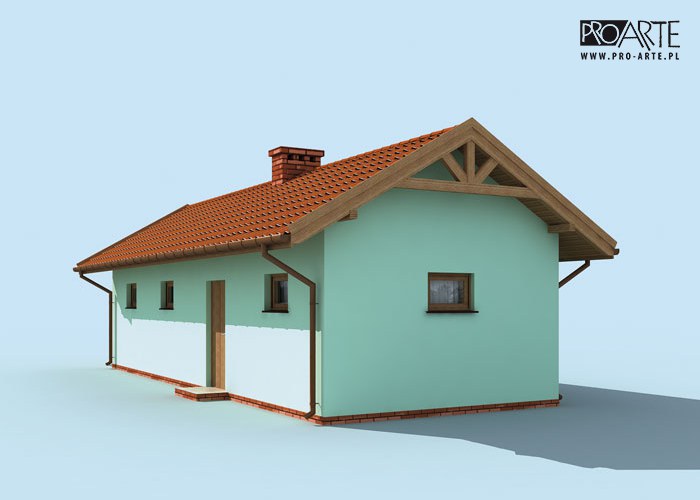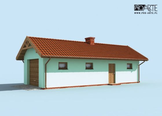 Budynek gospodarczy, wolnostojący. Projekt składa się z części architektonicznej, konstrukcyjnej i wewnętrznej instalacji elektrycznej. W projekcie załączone są podstawowe zestawienie stali, drewna i stolarki okienno-drzwiowej. Do projektu dołączamy bezpłatną zgodę na wprowadzenie zmian, oświadczenie projektantów o wykonaniu projektu zgodnie z obowiązującymi normami i przepisami oraz kserokopie uprawnień projektantów wraz z aktualnym wpisem do izby. W przypadku zamówienia projektu w technologii lekkiej, drewnianej konstrukcji szkieletowej, powierzchnia użytkowa budynku jest o około 7% większa.