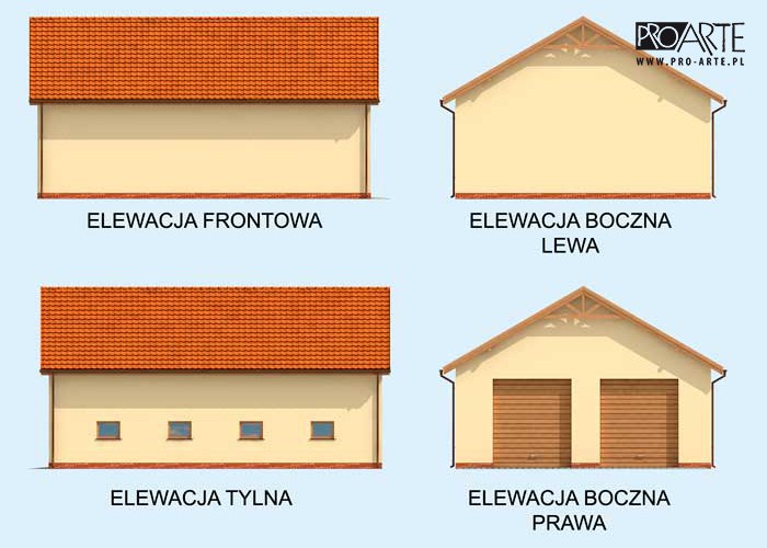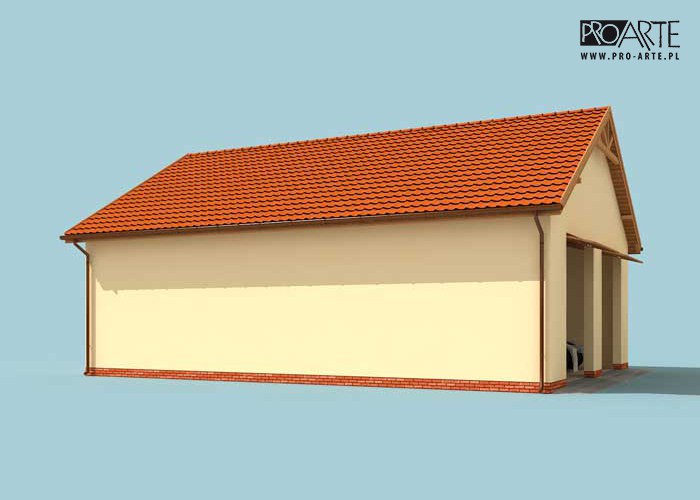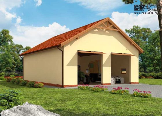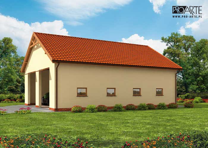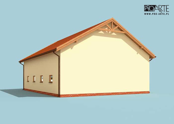 Budynek gospodarczy, wolnostojący. Projekt składa się z części architektonicznej, konstrukcyjnej i wewnętrznej instalacji elektrycznej. W projekcie załączone są podstawowe zestawienie stali, drewna i stolarki okienno-drzwiowej. Do projektu dołączamy bezpłatną zgodę na wprowadzenie zmian, oświadczenie projektantów o wykonaniu projektu zgodnie z obowiązującymi normami i przepisami oraz kserokopie uprawnień projektantów wraz z aktualnym wpisem do izby. W przypadku zamówienia projektu w technologii lekkiej, drewnianej konstrukcji szkieletowej, powierzchnia użytkowa budynku jest o około 7% większa.