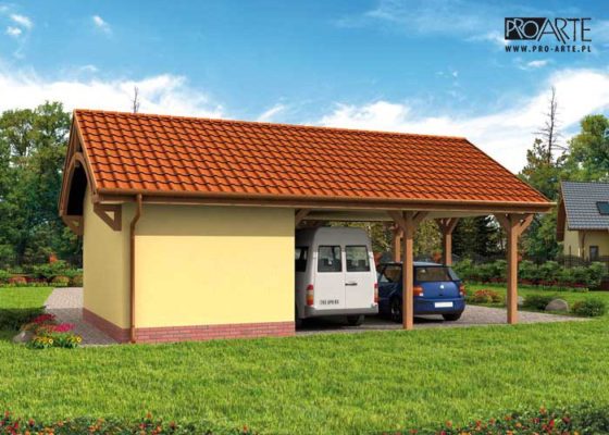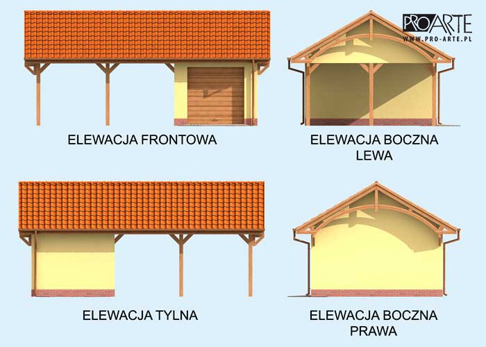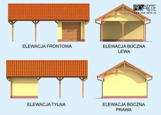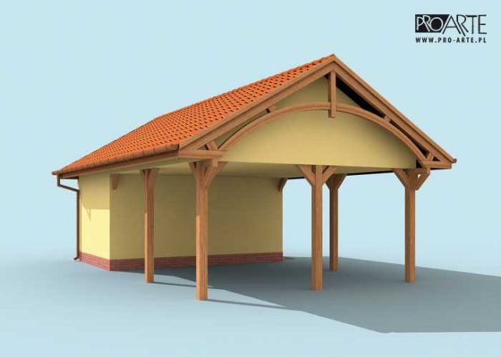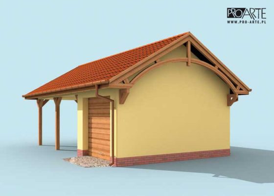 Budynek gospodarczy, wolnostojący. Projekt składa się z części architektonicznej, konstrukcyjnej i wewnętrznej instalacji elektrycznej. W projekcie załączone są podstawowe zestawienie stali, drewna i stolarki okienno-drzwiowej. Do projektu dołączamy bezpłatną zgodę na wprowadzenie zmian, oświadczenie projektantów o wykonaniu projektu zgodnie z obowiązującymi normami i przepisami oraz kserokopie uprawnień projektantów wraz z aktualnym wpisem do izby. W przypadku zamówienia projektu w technologii lekkiej, drewnianej konstrukcji szkieletowej, powierzchnia użytkowa budynku jest o około 7% większa.