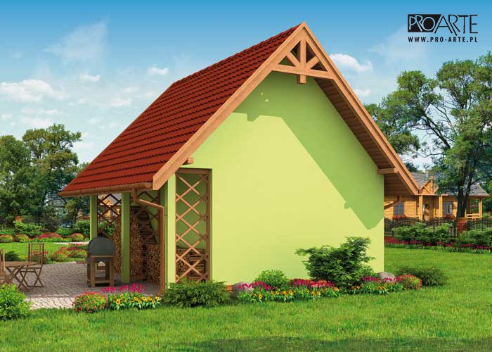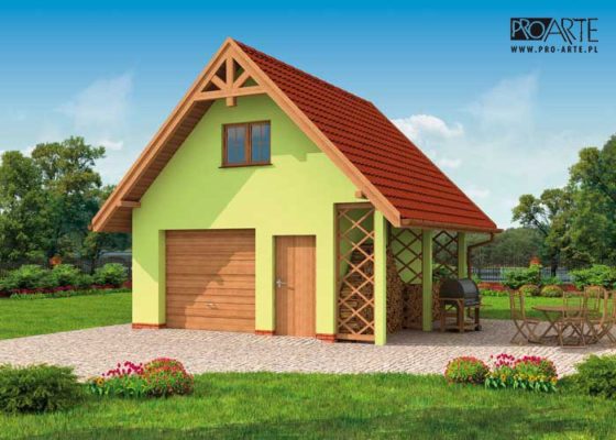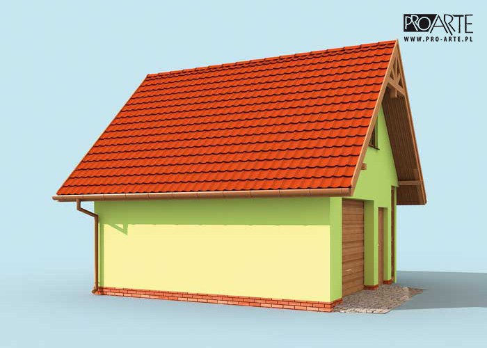 Budynek gospodarczy, wolnostojący. Projekt składa się z części architektonicznej, konstrukcyjnej i wewnętrznej instalacji elektrycznej. W projekcie załączone są podstawowe zestawienie stali, drewna i stolarki okienno-drzwiowej. Do projektu dołączamy bezpłatną zgodę na wprowadzenie zmian, oświadczenie projektantów o wykonaniu projektu zgodnie z obowiązującymi normami i przepisami oraz kserokopie uprawnień projektantów wraz z aktualnym wpisem do izby. W przypadku zamówienia projektu w technologii lekkiej, drewnianej konstrukcji szkieletowej, powierzchnia użytkowa budynku jest o około 7% większa.