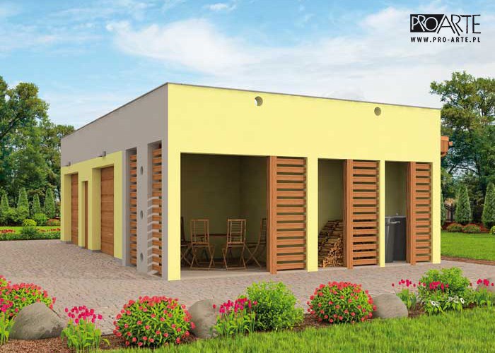 79.38 G254 budynek gospodarczy https://szkieletowedomy.pl/projekt/inne-obiekty/proarte-1322/ parter i poddasze użytkowe lub piętro wielospadowy