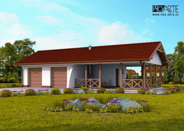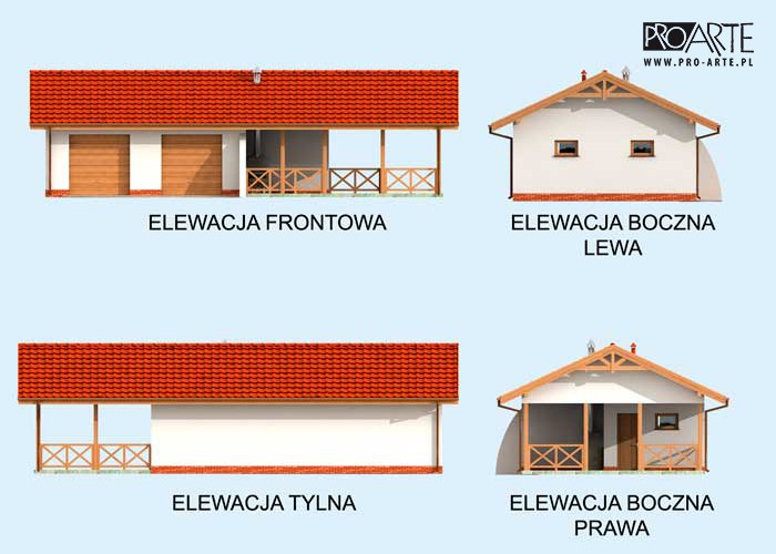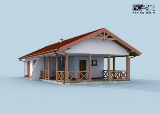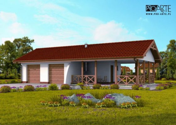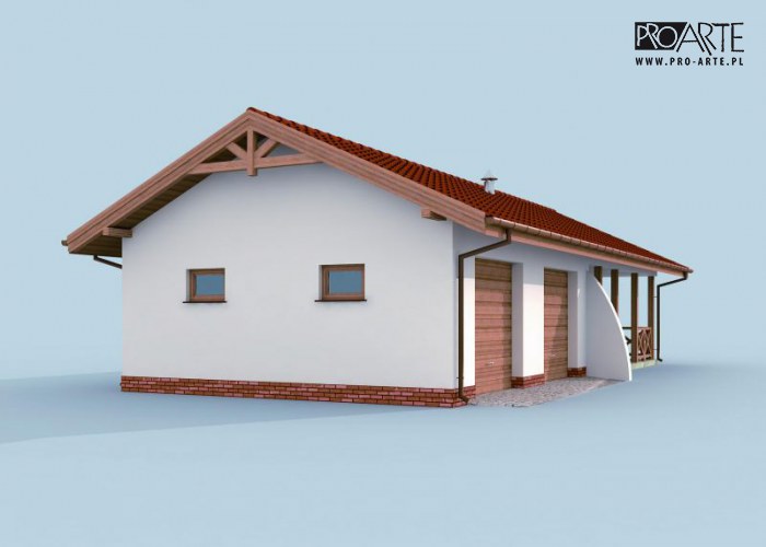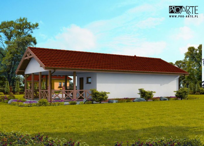 Budynek gospodarczy, wolnostojący. Projekt składa się z części architektonicznej, konstrukcyjnej i wewnętrznej instalacji elektrycznej. W projekcie załączone są podstawowe zestawienie stali, drewna i stolarki okienno-drzwiowej. Do projektu dołączamy bezpłatną zgodę na wprowadzenie zmian, oświadczenie projektantów o wykonaniu projektu zgodnie z obowiązującymi normami i przepisami oraz kserokopie uprawnień projektantów wraz z aktualnym wpisem do izby. W przypadku zamówienia projektu w technologii lekkiej, drewnianej konstrukcji szkieletowej, powierzchnia użytkowa budynku jest o około 7% większa.