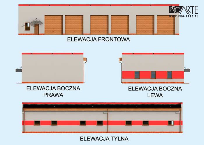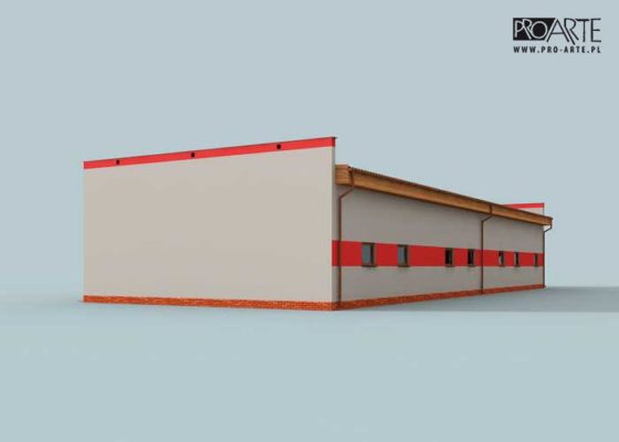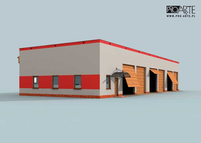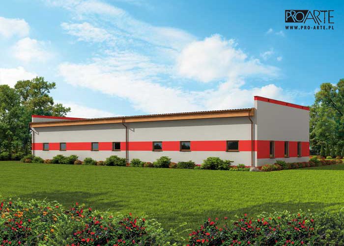Budynek gospodarczy, wolnostojący. Projekt składa się z części architektonicznej, konstrukcyjnej i wewnętrznej instalacji elektrycznej. W projekcie załączone są podstawowe zestawienie stali, drewna i stolarki okienno-drzwiowej. Do projektu dołączamy bezpłatną zgodę na wprowadzenie zmian, oświadczenie projektantów o wykonaniu projektu zgodnie z obowiązującymi normami i przepisami oraz kserokopie uprawnień projektantów wraz z aktualnym wpisem do izby. W przypadku zamówienia projektu w technologii lekkiej, drewnianej konstrukcji szkieletowej, powierzchnia użytkowa budynku jest o około 7% większa.