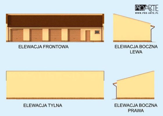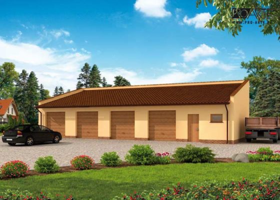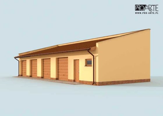 Budynek gospodarczy, wolnostojący. Projekt składa się z części architektonicznej, konstrukcyjnej i wewnętrznej instalacji elektrycznej. W projekcie załączone są podstawowe zestawienie stali, drewna i stolarki okienno-drzwiowej. Do projektu dołączamy bezpłatną zgodę na wprowadzenie zmian, oświadczenie projektantów o wykonaniu projektu zgodnie z obowiązującymi normami i przepisami oraz kserokopie uprawnień projektantów wraz z aktualnym wpisem do izby. W przypadku zamówienia projektu w technologii lekkiej, drewnianej konstrukcji szkieletowej, powierzchnia użytkowa budynku jest o około 7% większa.
