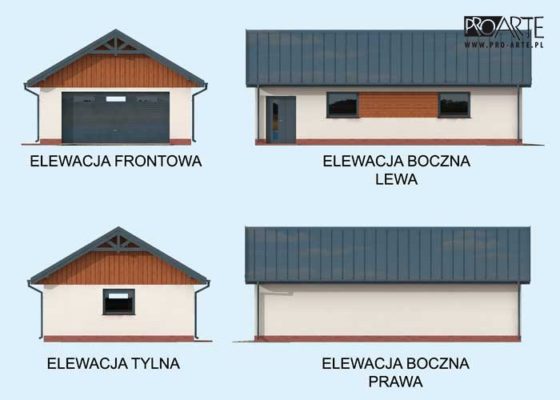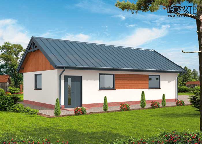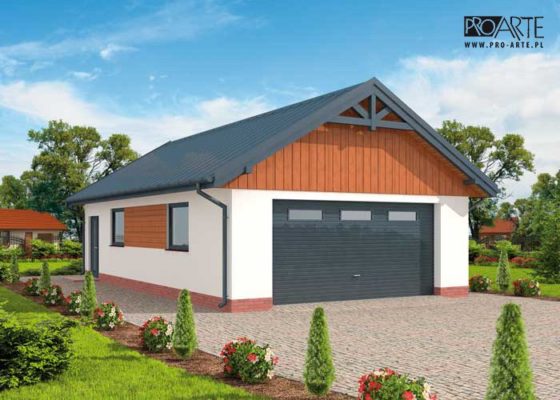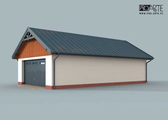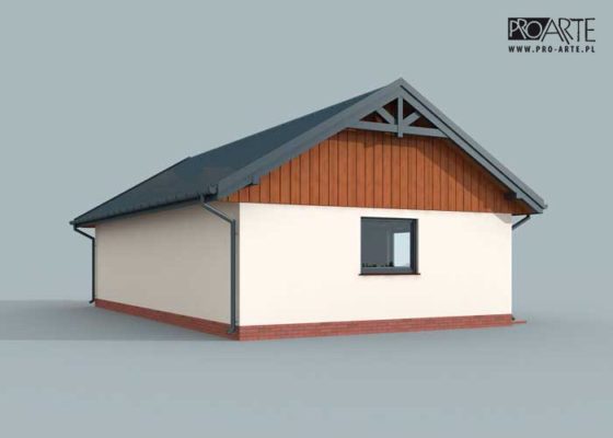 Budynek gospodarczy, wolnostojący. Projekt składa się z części architektonicznej, konstrukcyjnej i wewnętrznej instalacji elektrycznej. W projekcie załączone są podstawowe zestawienie stali, drewna i stolarki okienno-drzwiowej. Do projektu dołączamy bezpłatną zgodę na wprowadzenie zmian, oświadczenie projektantów o wykonaniu projektu zgodnie z obowiązującymi normami i przepisami oraz kserokopie uprawnień projektantów wraz z aktualnym wpisem do izby. W przypadku zamówienia projektu w technologii lekkiej, drewnianej konstrukcji szkieletowej, powierzchnia użytkowa budynku jest o około 7% większa.