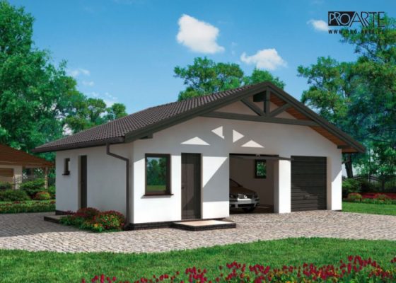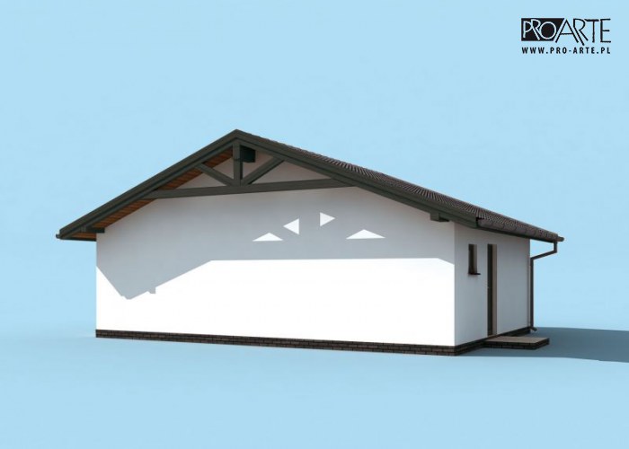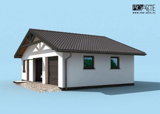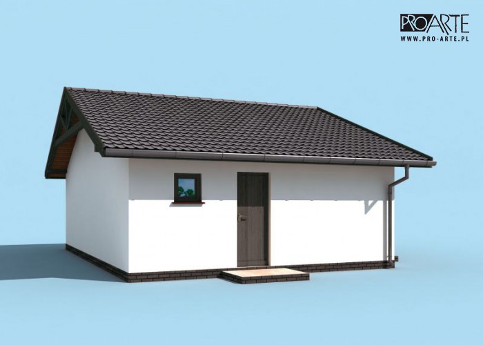 Budynek gospodarczy, wolnostojący. Projekt składa się z części architektonicznej, konstrukcyjnej i wewnętrznej instalacji elektrycznej. W projekcie załączone są podstawowe zestawienie stali, drewna i stolarki okienno-drzwiowej. Do projektu dołączamy bezpłatną zgodę na wprowadzenie zmian, oświadczenie projektantów o wykonaniu projektu zgodnie z obowiązującymi normami i przepisami oraz kserokopie uprawnień projektantów wraz z aktualnym wpisem do izby. W przypadku zamówienia projektu w technologii lekkiej, drewnianej konstrukcji szkieletowej, powierzchnia użytkowa budynku jest o około 7% większa.